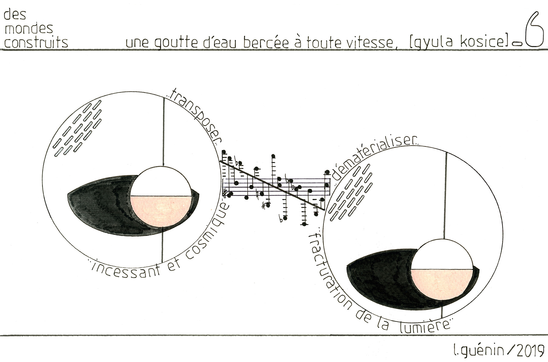 « La sculpture et la musique ont des relations intimes. Je ne cherche pas à décrire ou figurer en son un geste ou une matière, mais bien à révéler un monde sonore caché et enfoui en travaillant sur les formes, le trait, l’épaisseur ou encore la vibration. Chaque mouvement devient un petit monde des possibles qui se révèle grâce à la sculpture initiale, d’où il provient et d’où il s’échappe avec joie et malice. »