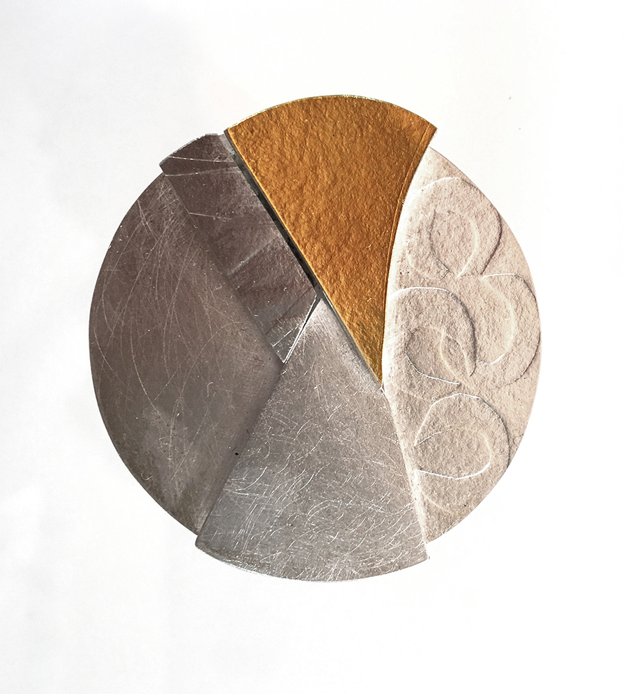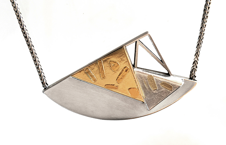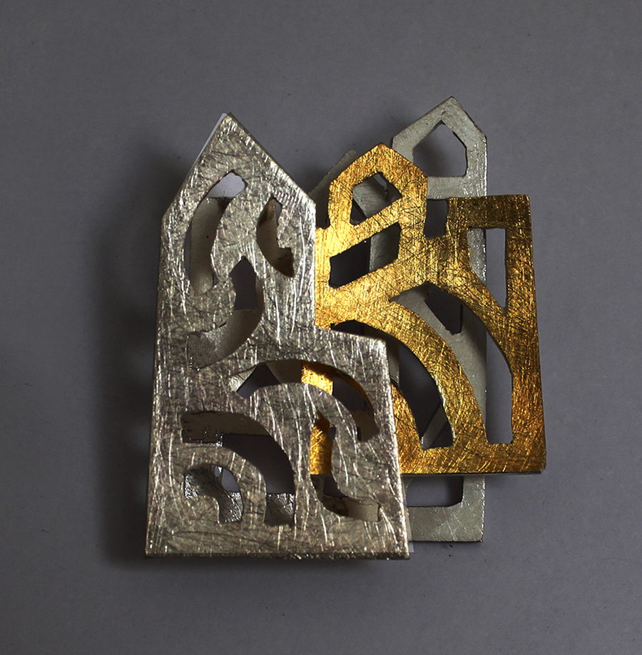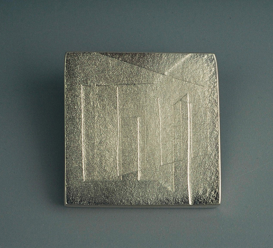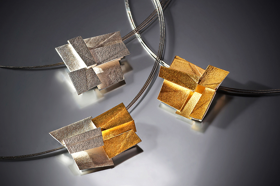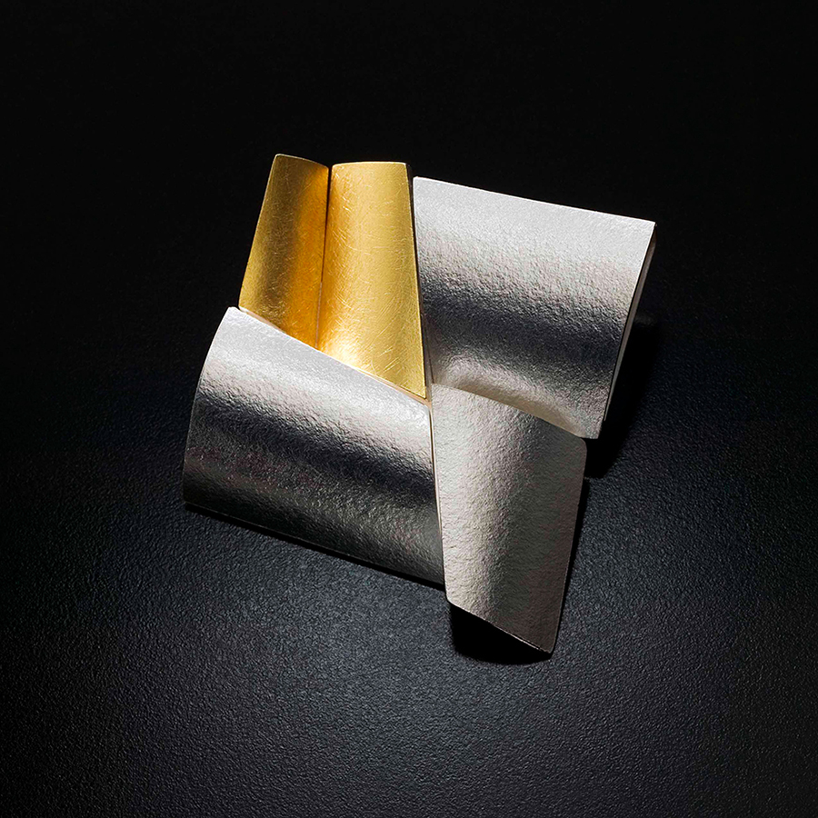 Dans son atelier de Montpellier, au milieu des croquis sur papier canson, entre plaques d’argent et fil d’or, chalumeau et ponceuse, les bijoux qui naissent de ses mains semblent porter ces traces multiples, en toute abstraction, à la fois profondément modernes et enracinés dans l’histoire des hommes. »