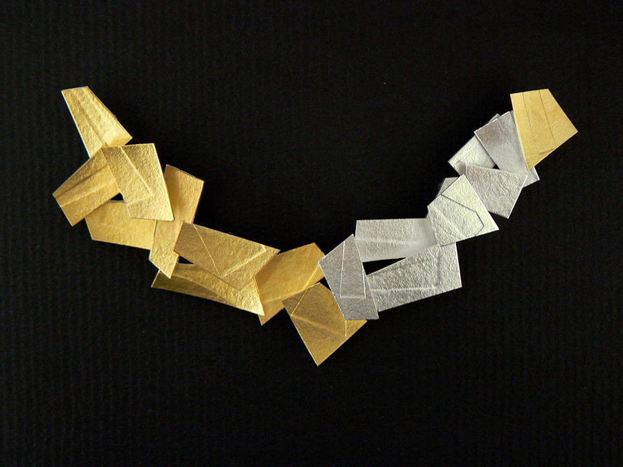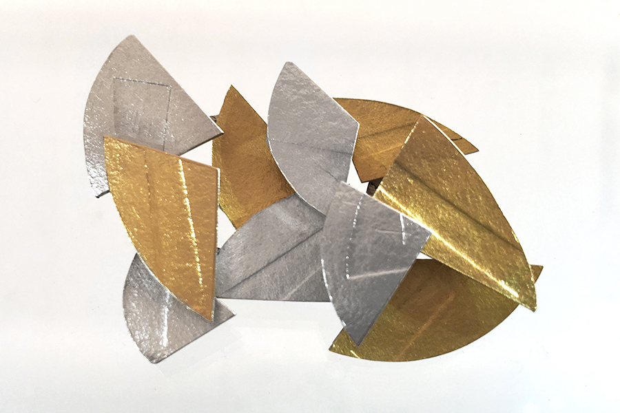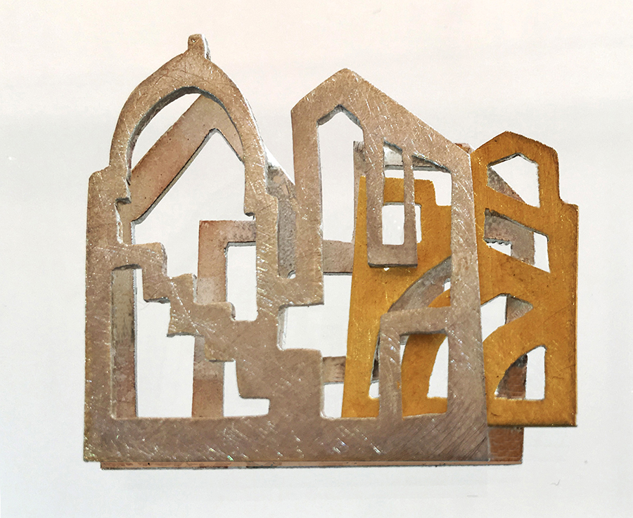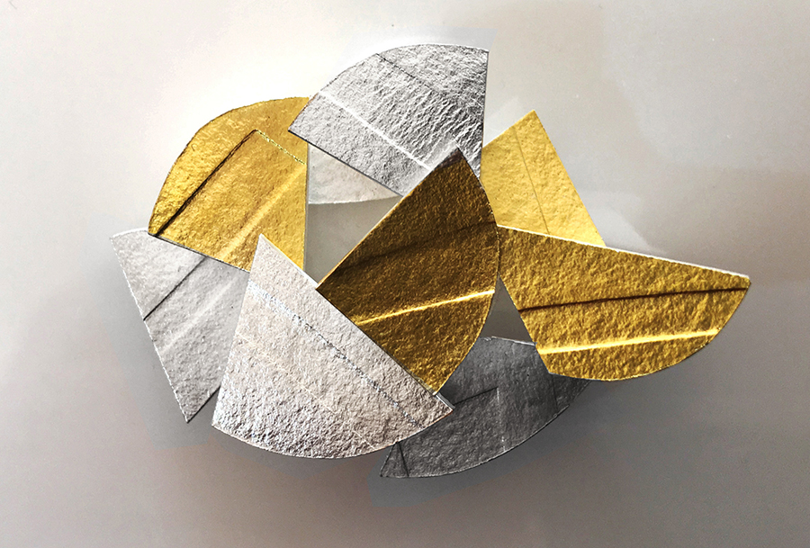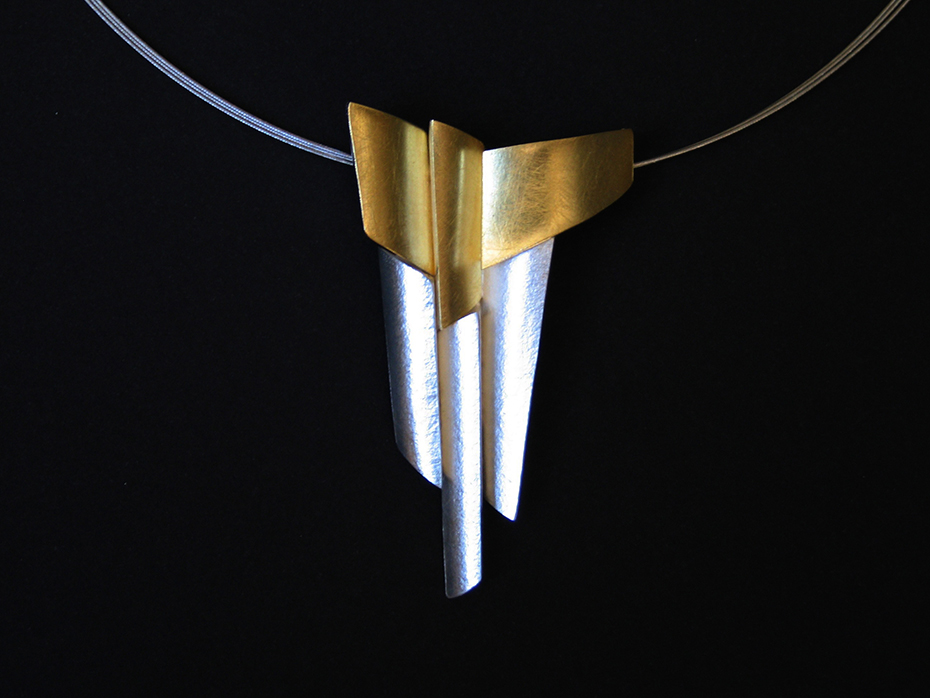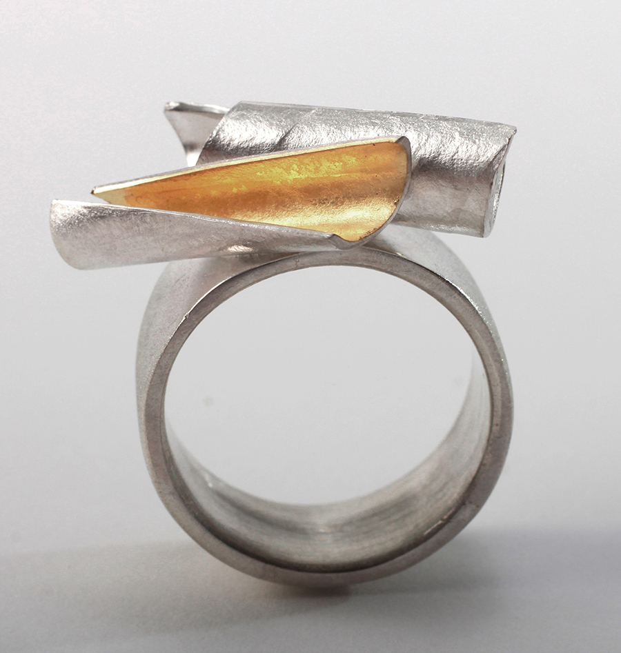 Dans son atelier de Montpellier, au milieu des croquis sur papier canson, entre plaques d’argent et fil d’or, chalumeau et ponceuse, les bijoux qui naissent de ses mains semblent porter ces traces multiples, en toute abstraction, à la fois profondément modernes et enracinés dans l’histoire des hommes. »